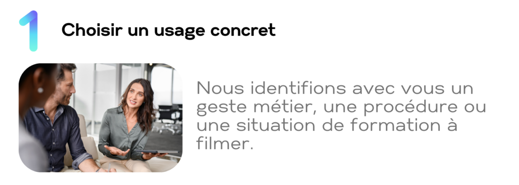 Le test d’usage permet de partir d’une situation réelle dans votre entreprise : un geste métier, une procédure, une opération terrain ou une étape clé de formation. Nous le filmons avec l’un de vos experts, puis nous transformons cette captation en vidéo claire et exploitable par vos équipes. Vous pouvez ensuite observer concrètement comment elle est comprise, utilisée et perçue sur le terrain.